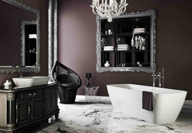 Большие окна с витражами в общественных зданиях или жилом интерьере это еще одна отличительная черта данного стиля. Каменные плиточные полы часто укладывались в виде шахматной доски, но иногда дизайнеры используют не только этот узор.