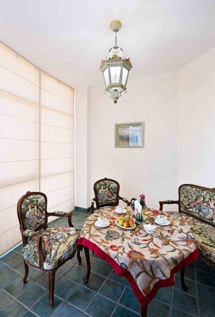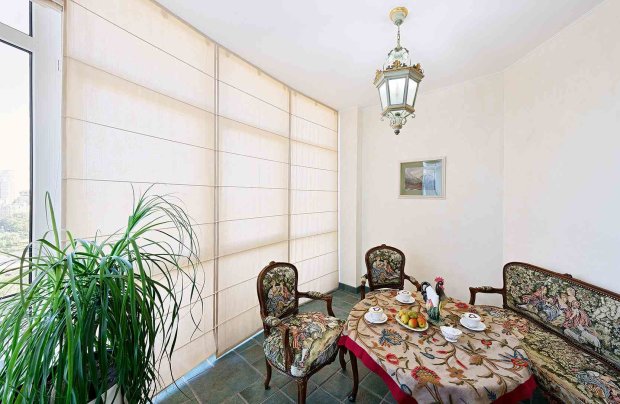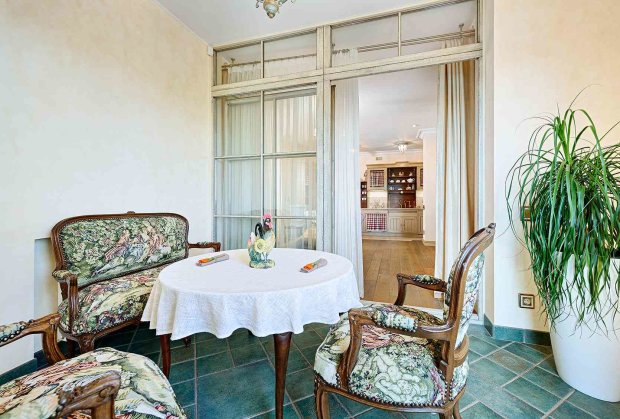 Дизайнер, Антон Манишин, использовал резную мебель с узорчатой обивкой, которая создает строгий, дорогостоящий интерьер.