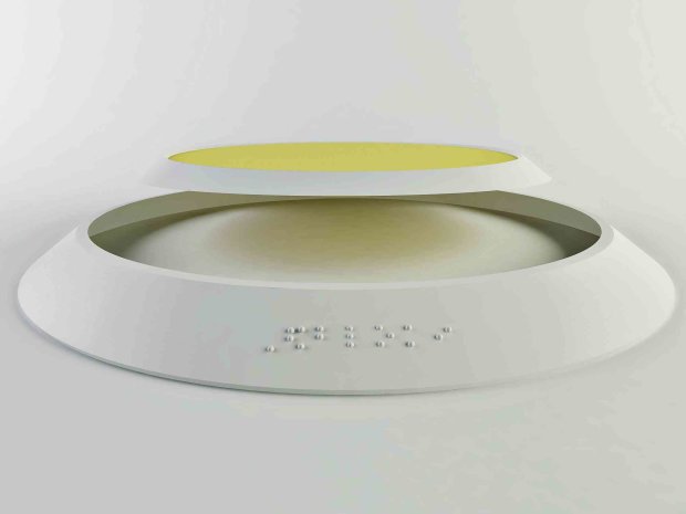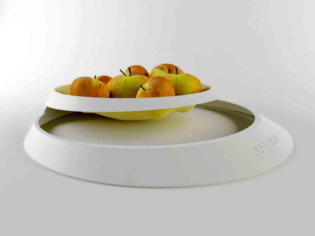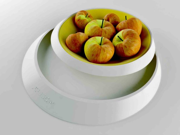 Тарелка состоит из верхней и нижней части. На нижней части находится название фруктов написанное шрифтом Брайля. Поэтому слепым людям будет удобно делать свой выбор – они прочтут и узнают, что в тарелке, но при этом не касаясь самой еды. — отметил дизайнер