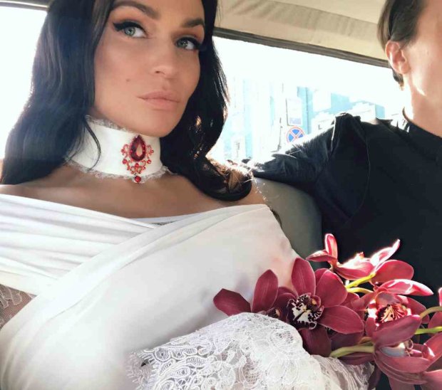 Отметим, что телеведущая, вопреки необычной тематике свадебного торжества, все же решила не нарушать некоторые традиции: