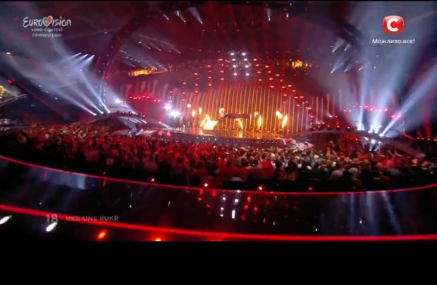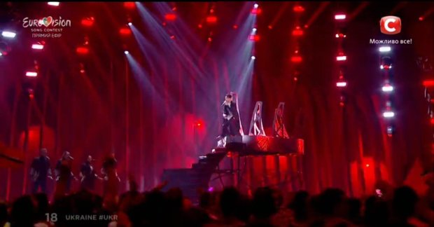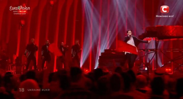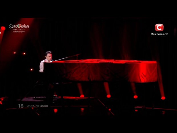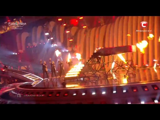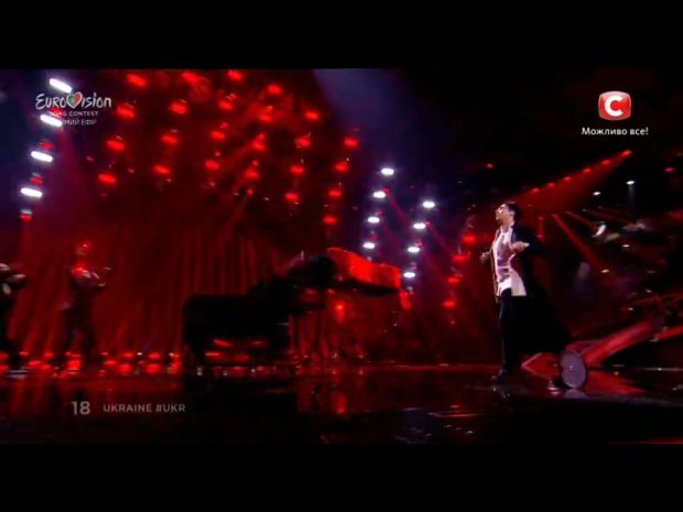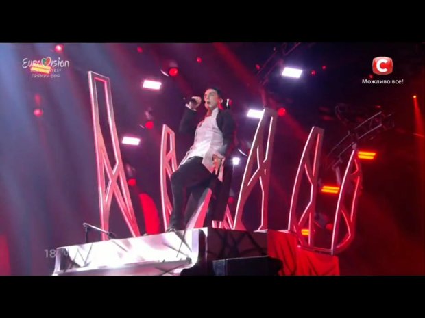 Представитель Украины на Евровидении 2018 — таинственный певец MELOVIN — выступил под первым номером с музыкальным хитом Under the Ladder, открыв заключительный день конкурса огненной постановкой.