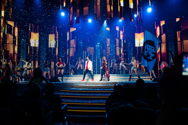 Со взрывом цветной бомбы можно сравнить появление на сцене Оли Полковой. Певица представила аудитории новую песню «Королева ночи». Блестящие наряды, сверхкороткие юбки, начес и яркий макияж — певица специально стилизовала номер под 90-е годы. Зрители неистовствовали! «Девочки, если что-то в жизни пошло не так — отправляйтесь в клуб и будьте королевами ночи», — призвала со сцены Полякова.