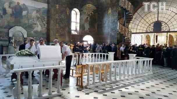 Похоронная церемония проходила в Трапезной церкви Киево-Печерской Лавры, где собралось огромное количество родственников, друзей и коллег погибшей.