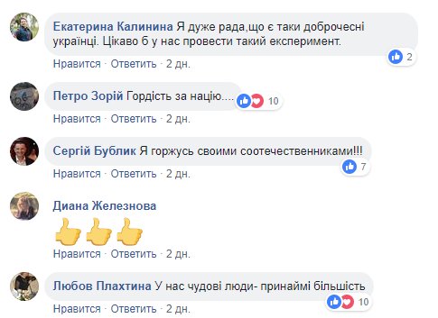 Провокационная премьера ЭксперименТЫ на СТБ: как реагировали в Сети?«Мені чомусь в таких випадках плакати хочеться… Але то від гордості за таких Українців!», «Я чомусь була впевнена в порядності ще з самого початку, але додивилась ролик до кінця, переконалась остаточно. Я горда за нашу націю!Слава Україні!», «Дуже вражена, та приємно здивована! Я думаю, що у нас є надія на хороше майбутнє», «Круто! Горда за українців! Чесно, не очікувала…», «Була вражена і зворушена.Слава Богу,що наш народ змінюється в кращу сторону» — написали в Сети.