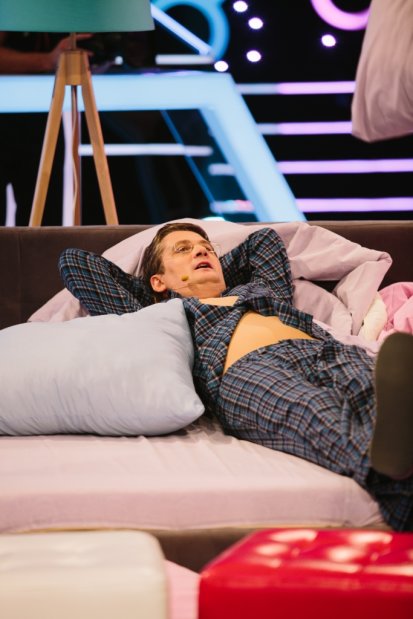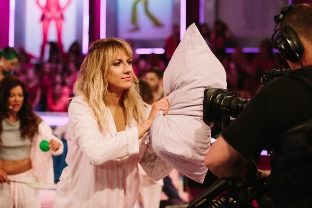 «Мы все – артистки, и у всех нас есть райдер. Это такая бумажка, которую отправляешь перед корпоративом заказчикам, и там написано, что должно быть у тебя в гримерке. Устрицы, знаешь ли, полсвиньи, молоко, хлеб, сметана, лимузин. В каждом из наших райдеров есть интересный пунктик. Вам предстоит отгадать, у кого какой», — заявила задание ведущая Хто зверху? Леся Никитюк.