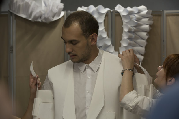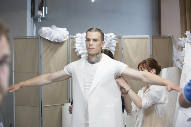 «На каждого человека ушло примерно три метра белых обоев, плюс еще 20 ватманов и упаковка бумаги для принтера для декора, — рассказывает главный художник по костюмам проекта Люда Бурлак. – А скрепляли мы все это сотней стержней силикатного клея! Молнии, кстати, тоже вклеивали. Так что костюмы – многоразовые».