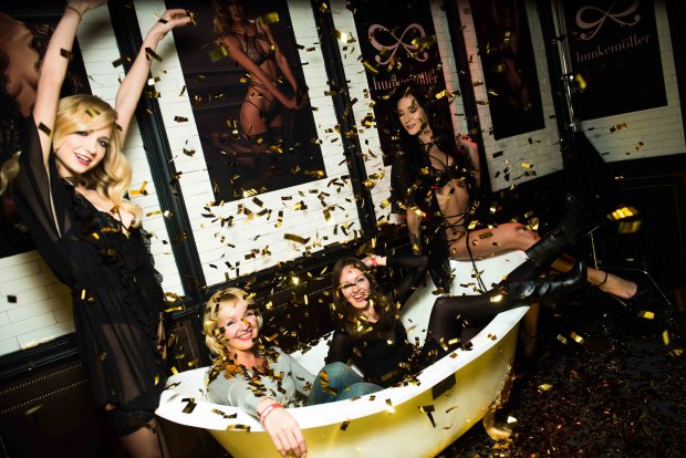 Гостей встречали девушки в соблазнительном нижнем белье и приглашали сначала залезть в ванну с золотым метафаном для веселого фото, а потом располагаться на больших кроватях.