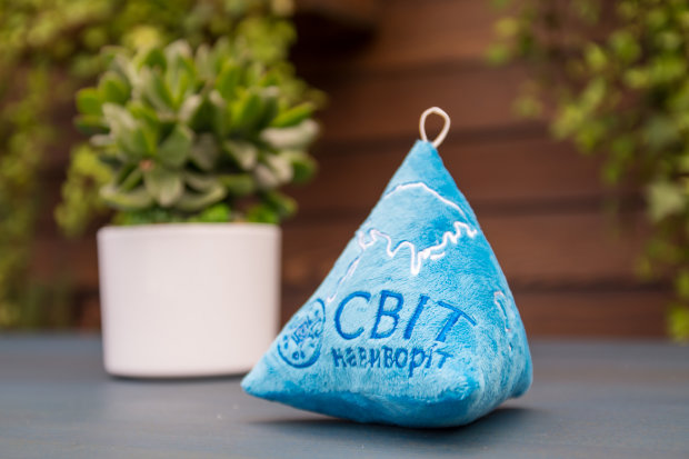 Форма мягкого изделия была выбрана не спроста. Во-первых, все предыдущие игрушки, разработанные Андре, были выполнены в форме треугольника, а во-вторых, таким образом дизайнер хотел подчеркнуть эксклюзивность познавательной программы Дмитрия Комарова Мир наизнанку. Мягкое изделие можно будет приобрести во всех магазинах Андре Тана a.Tan by Andre Tan. Ее стоимость будет составлять всего 99 гривен, а все деньги от продаж будут перечислены на лечение малышам, которым помогает проект Чашка кофе.