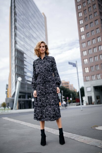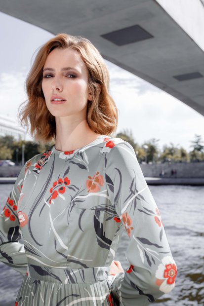 Новая коллекция – это много красоты: насыщенные цвета, мягкие ткани, безупречные модели. Глубокий зеленый, синий, красный и бордовый, геометрические рисунки, красные цветы гармонично вписываются в пейзажи осени и прекрасно передают настроение этого золотого времени года.
