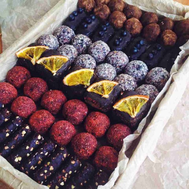 «Хотелось сладостей, приятных на вкус и способных усваиваться. Применив определенные знания (8 лет проведения тренингов по питанию) мы решили создать десерты на проростках. Из орехов используем только грецкие, но предварительно их пробудив. За основу используем семена (подсолнух, лен, гречка, конопля) – их также пробуждаем (семя проращивается, меняет свой состав, и «разархивируется»). В качестве консервантов используем: соль, мед, какао. Кокосовое молоко готовим самостоятельно. Ягоды собираем в своем дворе».