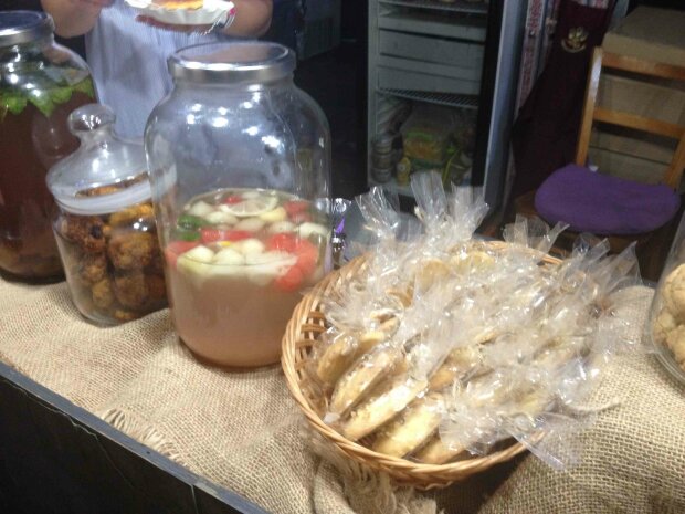 Кондитерская «Три ореха» угощала разнообразной выпечкой: орешки со сгущенкой, лимонный чизкейк, наполеон, печенье, сладкие пироги и все это можно было совместить с напитком из натуральных ингредиентов.