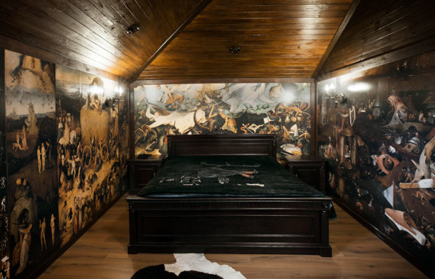 Так, для декорирования номера «Готический замок» использовали витражные стекла, старинную кровать, шкуры, а стены в нем затянуты репродукциями Босха. А в «Кабинет гинеколога» поместили настоящее гинекологическое кресло, выполненное из эко-кожи.