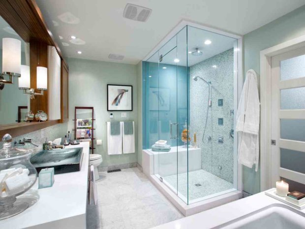 Очень важно учитывать при ремонте, чтобы полки, полотенце и другие средства гигиены были легко доступны, когда ты нежишься в теплой воде.