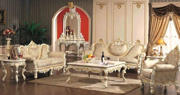 Если обратить внимание на расположение и количество мебели при создании королевского стиля можно заметить, что в жилых помещениях ее очень много.
