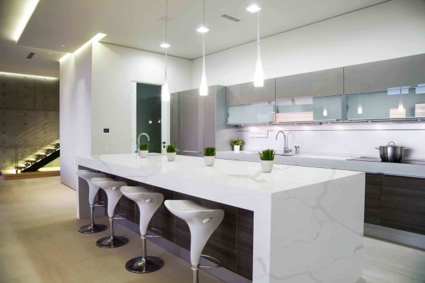 Хорошей идеей считается потолочная люстра с галогеновыми лампами, которые придают уют и очарование дизайну интерьера. Стильный аквариум с экзотической рыбой это идеальное украшение, которое придаст общей внутренней картины эстетичный высокотехнологичный внешний вид.