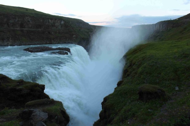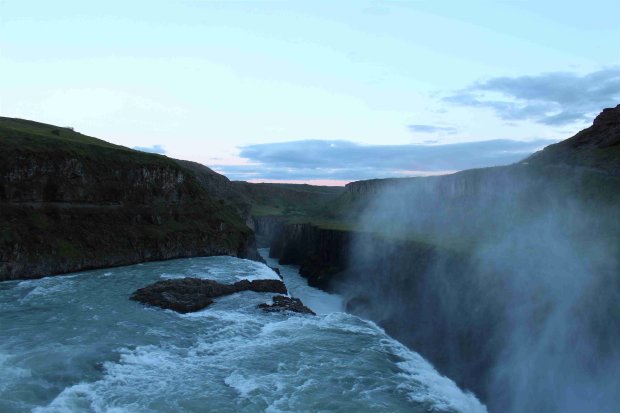 - Посетить третье звено Золотого кольца – водопад Гюдльфосс. Состоит этот экспонат из множества водяных «ступенек», поэтому в солнечную погоду здесь можно увидеть массовое скопление радуг. Лучше всего ехать ночью, чтобы иметь возможность подступиться поближе, не вступая в сражения с толпами фотографов-туристов.
