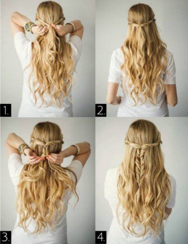 Чтобы повторить такое модное плетение волос, первым делом хорошо расчеши локоны. Сбоку отдели три одинаковые пряди и перекрестите их сначала, как в обычной косе. Затем выпусти нижнюю прядь и замените ее новой. Затем эта прядь пойдет наверх. Продолжай вплетать таким образом новые пряди, пока водопад не достигнет необходимой тебе длины.