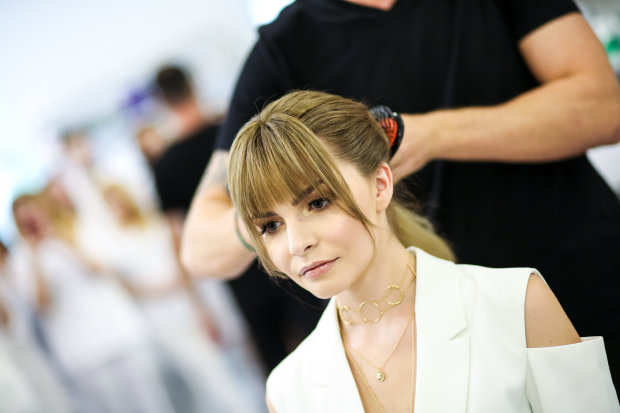 Чтобы достичь максимального эффекта в Palace de Beauté окрашивание AirTouch делают одновременно два мастера. В дополнение используется новое лечебное средство для волос Оlaplex, которое препятствует повреждению волос, восстанавливая разрушенные дисульфидные связи. Безусловно, такая работа не может стоить дешево. Сlutch попросил салон предоставить информацию, сколько стоило окрашивание модели. У девушки длинные волосы, поэтому с ней около 10 часов работали 4 человека (2 мастера и 2 ассистента) — стоимость такого окрашивания около 12 тысяч гривен.