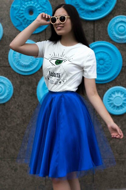«Саша Заяц — отражение девушки в стиле T&EVA. Она украинка, но любит много путешествовать и вдохновляется как красотами дома, так и других стран. Она не боится быть яркой и привлекать к себе внимание, но одновременно может быть нежной и романтичной. Мы решили сделать съемку в привычной для блогера манере — street style, отказавшись от постановочных декораций в пользу киевских улиц», — комментирует дизайнер бренда Татьяна Терчиева.