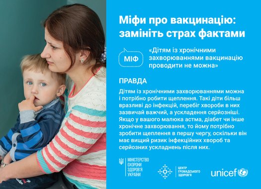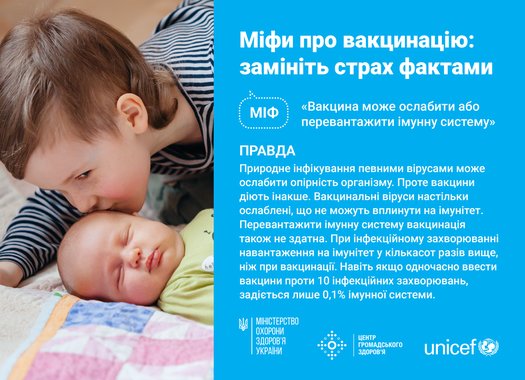 Вместе с Детским фондом ООН (ЮНИСЕФ) в Украине Минздрав опубликовал опровержение самых распространенных мифов о вакцинации.